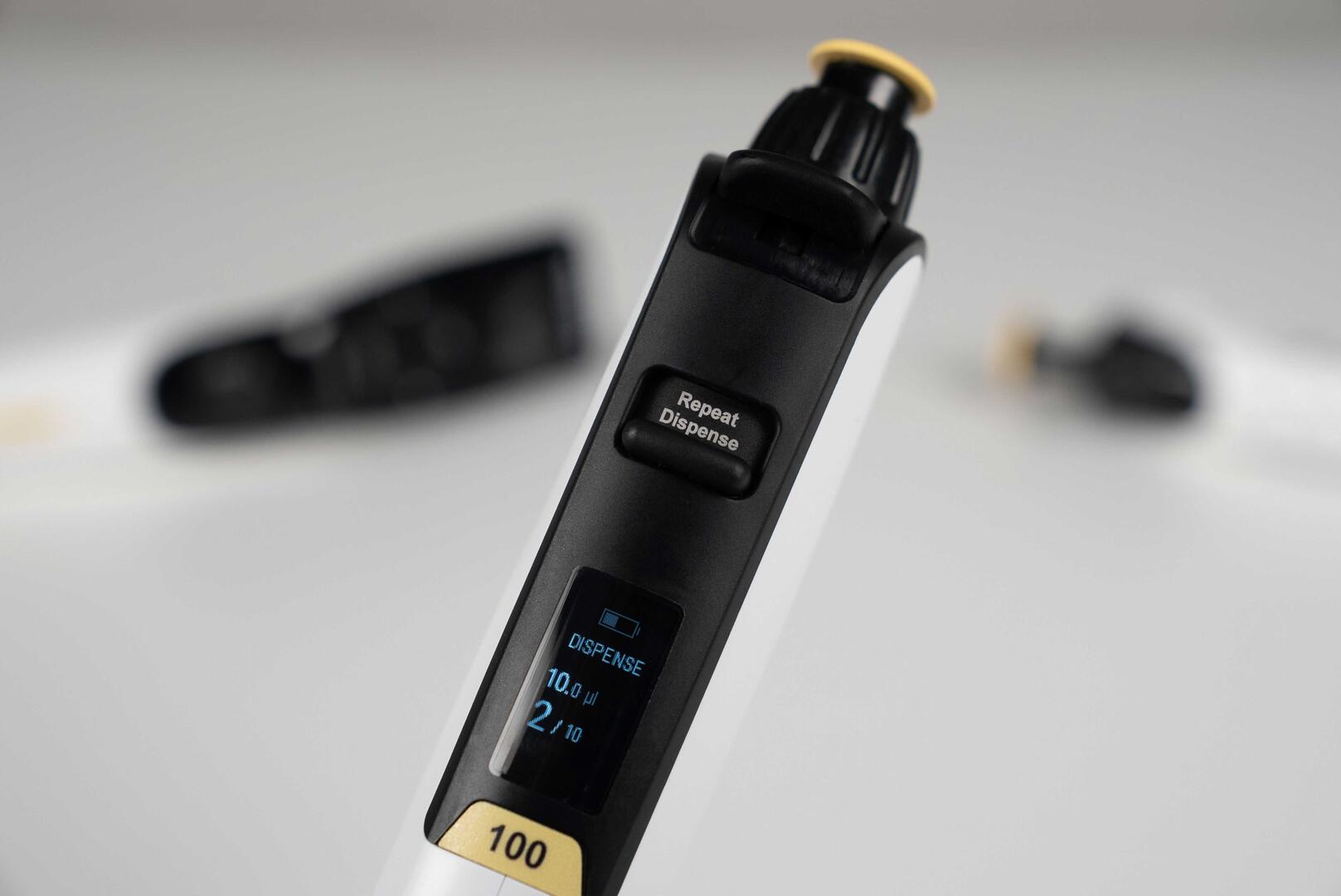 Thanks to its intuitive design, the SWITCH allows effortless switching between manual pipetting and repeat dispense mode. The quick set ring enables fast, one-handed volume adjustments, while the clear digital display ensures easy parameter setting and readability during work.