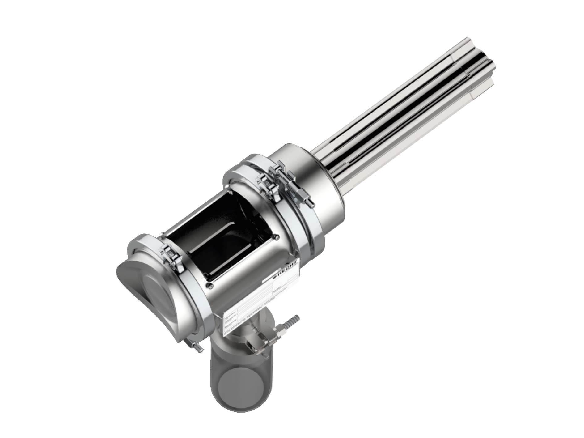 Lžíce na vzorky – Inline utěsněná lžíce; manuální/pneumatický pohon; definovaná dávka, výsyp 180°; míchadlo pro kohezivní média; demontáž Tri-Clamp; kompatibilní s kontinuální vložkou/nádrží.