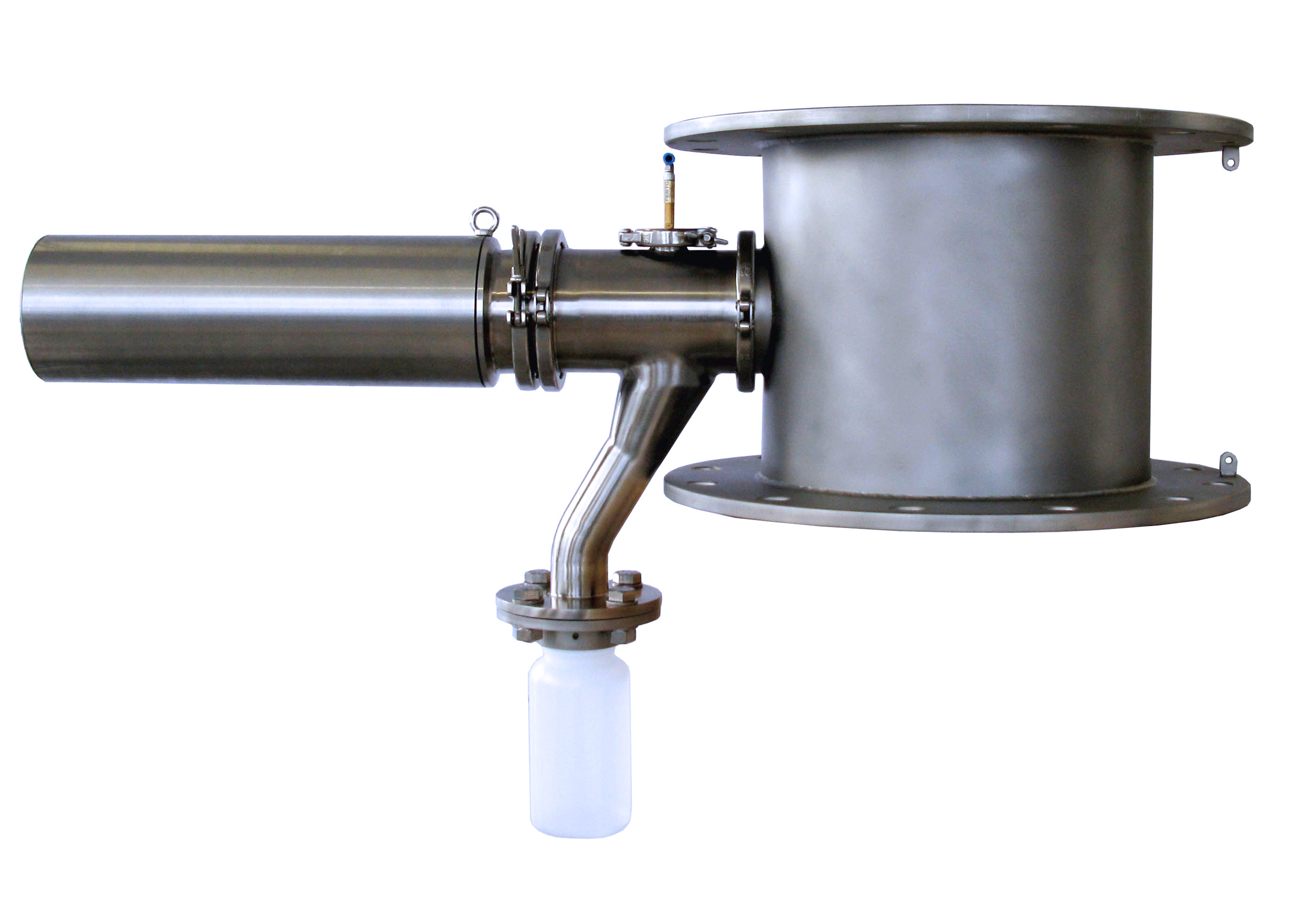 Vakuový vzorkovač – Inline design zapuštěný do stěny; vakuově/tlakově těsný (do 2,0 bar); samočistící prstencový filtr; Tri-Clamp, bez mrtvých prostor; volitelný glove-box/magazín; sanitární/gravimetrické vzorkování.